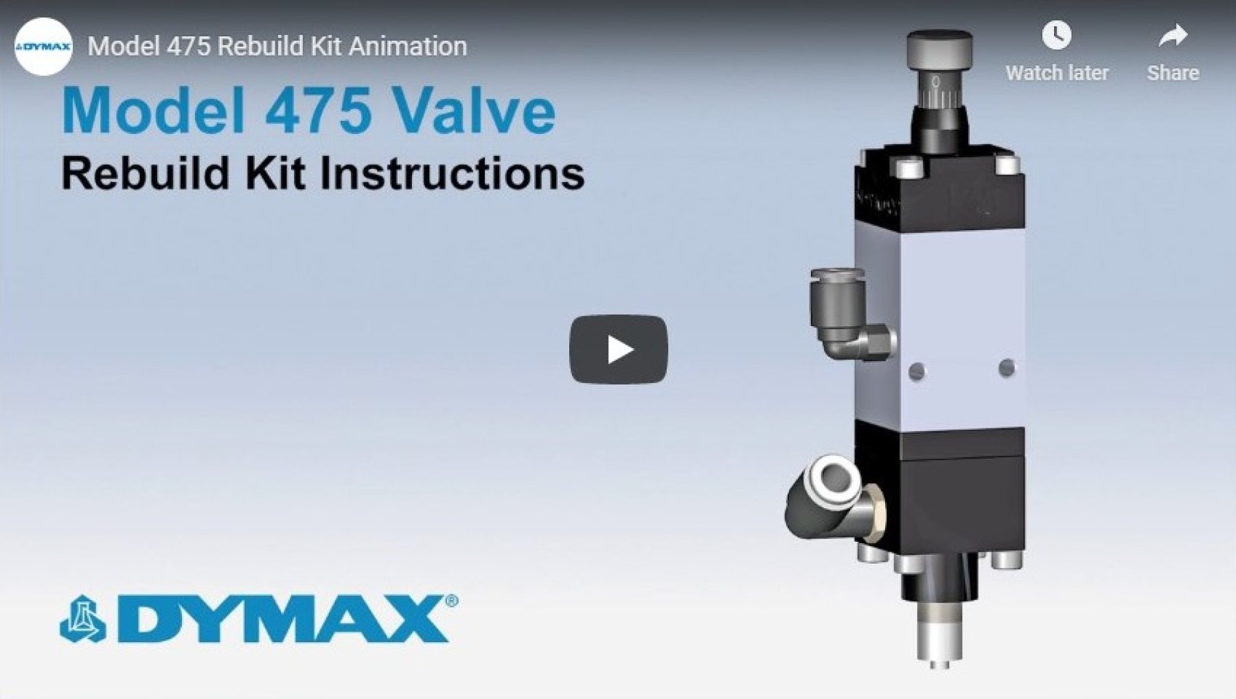 Cette animation fournit des instructions étape par étape sur la façon de démonter et de remonter votre vanne de dosage modèle 475 à l'aide de notre kit de reconstruction Dymax modèle 475.