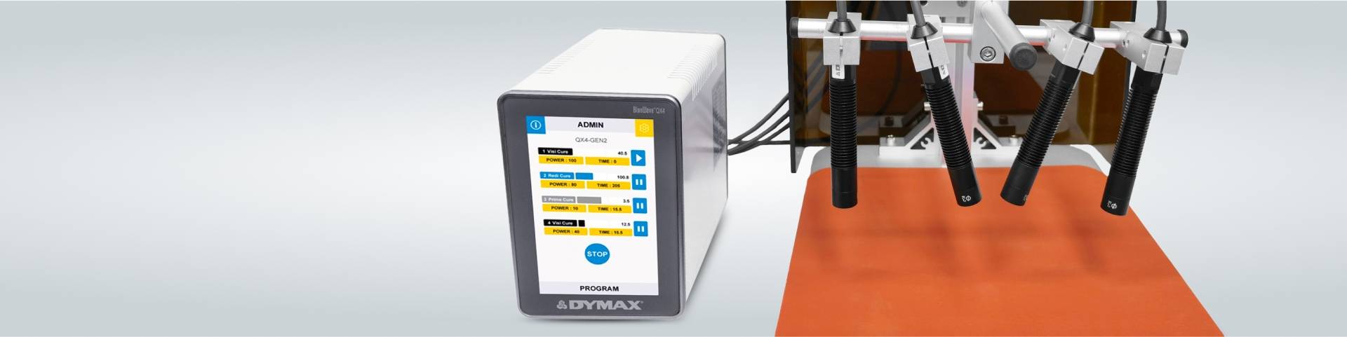Dymax propose deux types de systèmes de séchage par lampe spot , UV à large spectre et LED, qui polymérisation généralement les adhésifs polymérisables en 1 à 10 secondes.